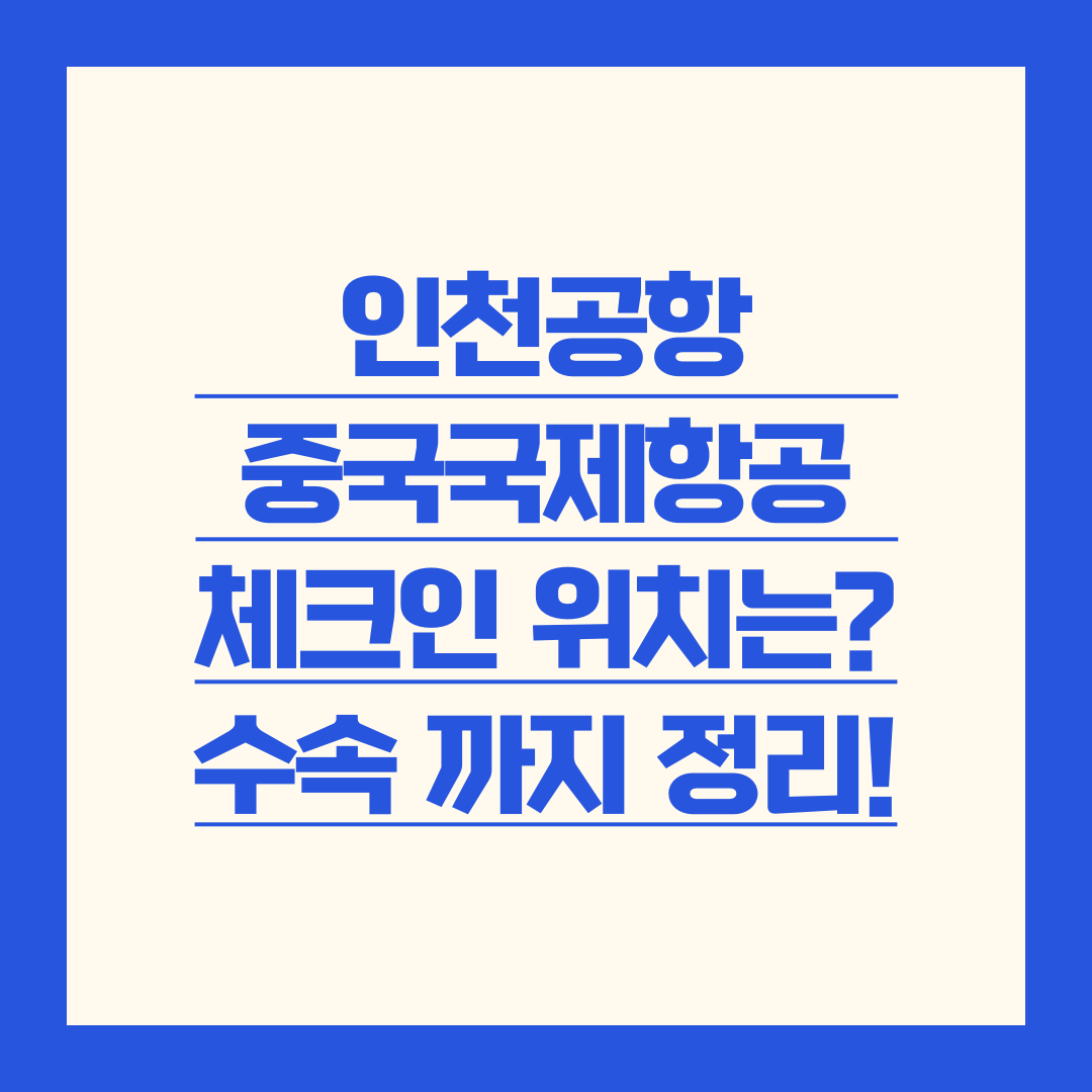 중국국제항공을 이용한 여행을 준비 중이라면, 인천공항 체크인 위치와 절차를 사전에 숙지해두는 것이 매우 중요합니다. 미리 확인하고 준비하면 한층 더 여유로운 출국이 가능합니다.