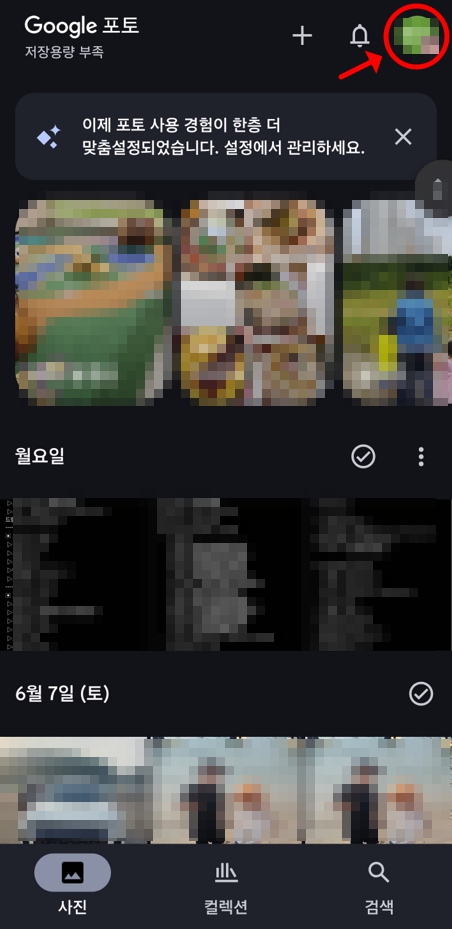 ▲ 먼저 휴대폰에서 구글포토 앱을 실행 후 우측 상단 프로필 아이콘을 누릅니다.