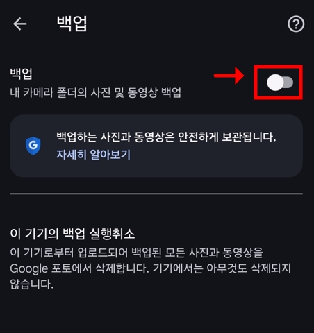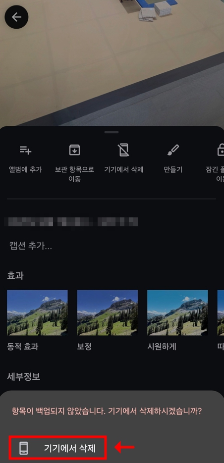 이 기능은 구글포토에 백업된 사진을 기준으로 기기에 있는 사진을 삭제하는 기능입니다.