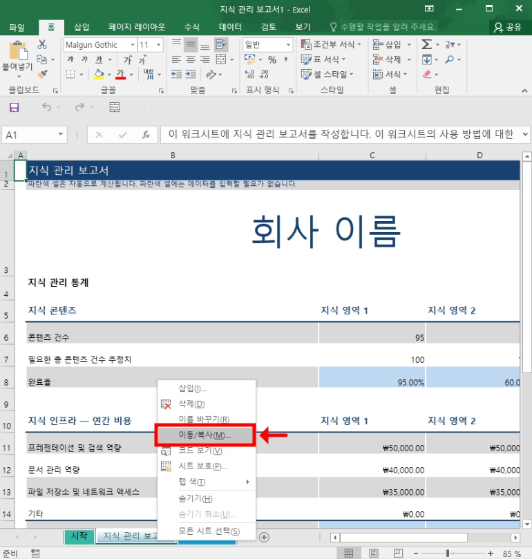- 이동 또는 복사 메뉴를 클릭합니다.