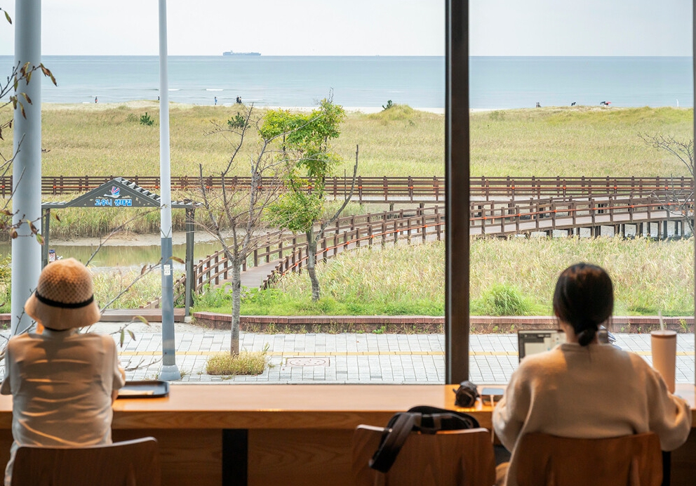 부산 다대포 바다 앞에 위치한 매장. 통창으로 펼쳐지는 바다와 일몰이 장관이며, 창가석에 앉으면 하루의 피로가 사라질 정도입니다.