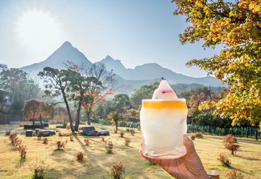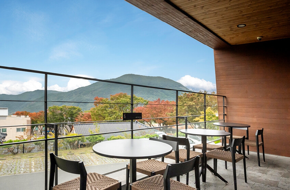 스타벅스 900호점으로 특별한 의미를 가진 이곳은, 팔공산 단풍 시즌이면 두 테라스에서 서로 다른 풍경을 즐길 수 있는 명소입니다.