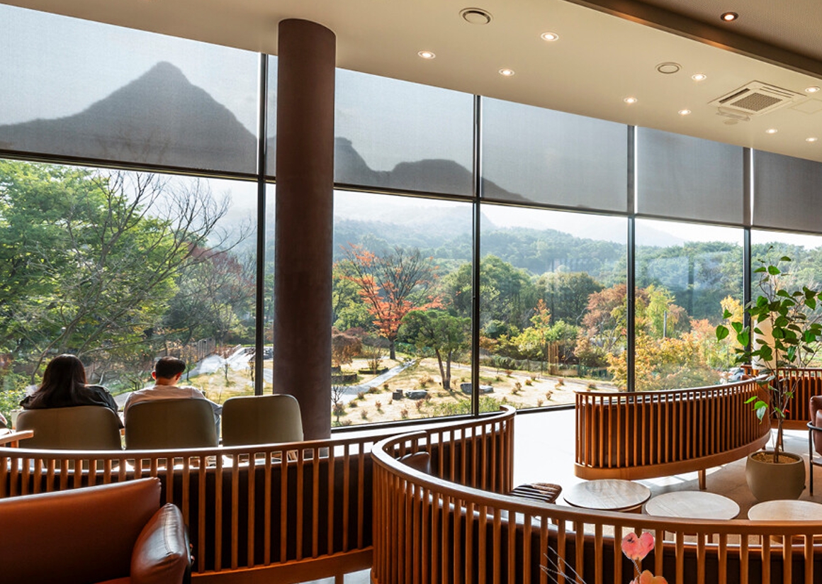 숲과 정원이 조화를 이루는 산책 후 들르기 좋은 테라스형 매장입니다. 매장 내부 갤러리 인테리어도 감각적이에요.