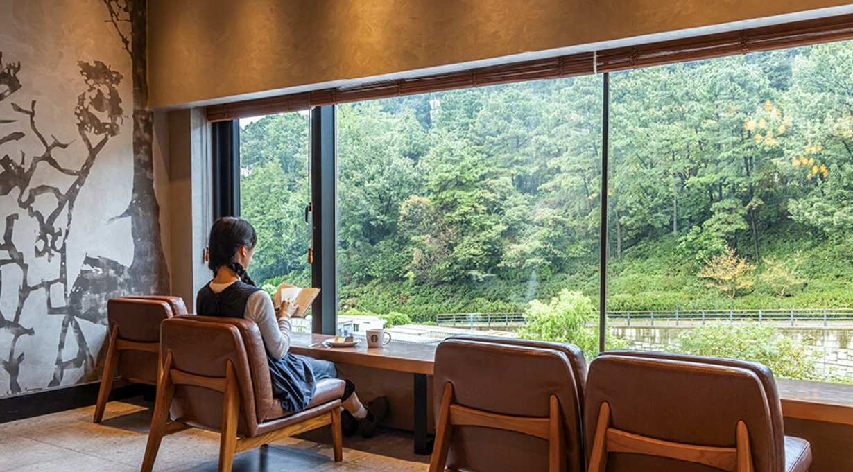 북한산국립공원 바로 옆에 위치한 이 매장은 산을 마주한 대형 통창으로 사계절 풍경을 즐길 수 있습니다. 북한산 모양의 특별 음료 컵은 이곳에서만 만날 수 있어요.