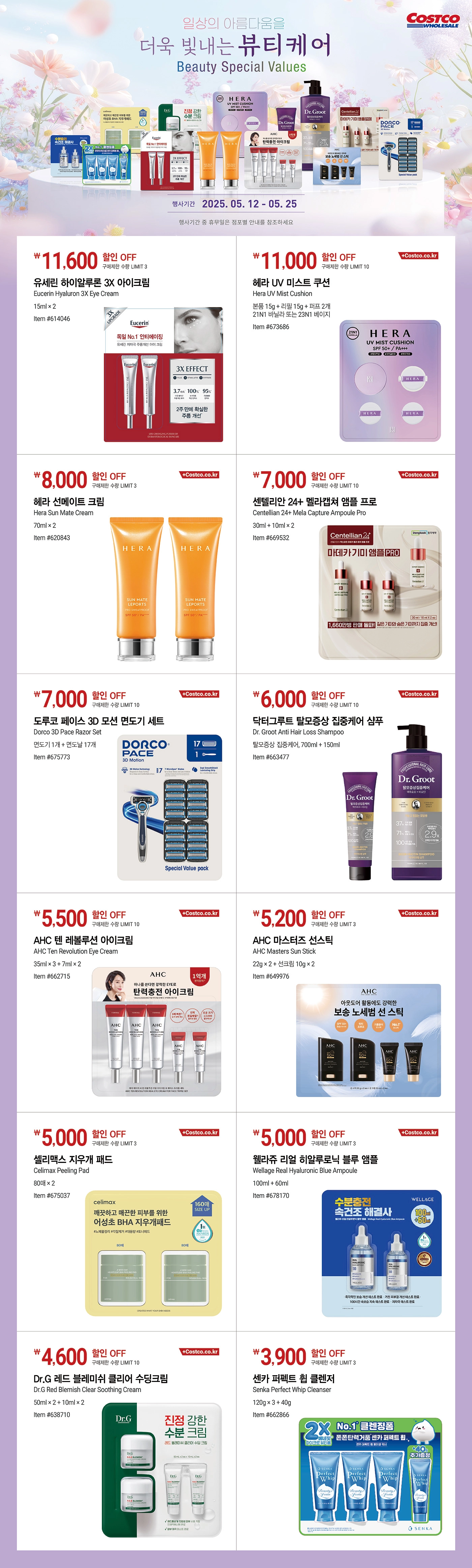 2025년 5월 12일부터 5월 25일까지, 코스트코 매장에서 뷰티 특가전이 진행 중입니다.